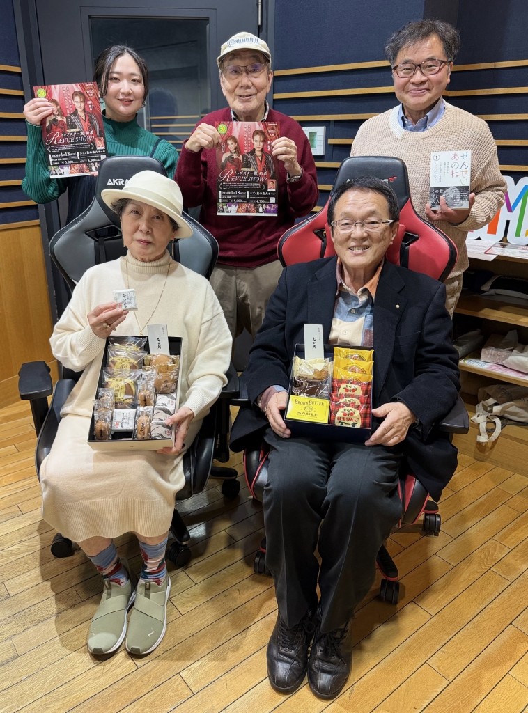 向井さんは昭和25年、家佐野市にお生まれの今年75歳。岸和田高校から同志社 大学法学部に学び、なんと24歳で明治25年創業の老舗和菓子店「株式会社向 新」社長に就任。平成28年、6代目向井新さんに社長をバトンタッチ。現在、 家佐野文化振興財団理事長、OSK日本教劇団支援委員会副委員長など、地域、文 化、教育活動に取り組んでおられます。この番組でも紹介した「地元の子供たちの 感性や情操を高め、心からあふれ出る豊かな表現力を育みたいと始まった「あのね文庫」詩コンクールは、ことし14回目を迎えています。 今夜は、向井会長が応援するもう一つの活動として、来年2026年1月に「泉佐 野市総合文化センター・開館30周年記念公演」として開催される「OSKトップスター和希REVUESHOW」の話題など、あれこれお伺いしたいと思います。
