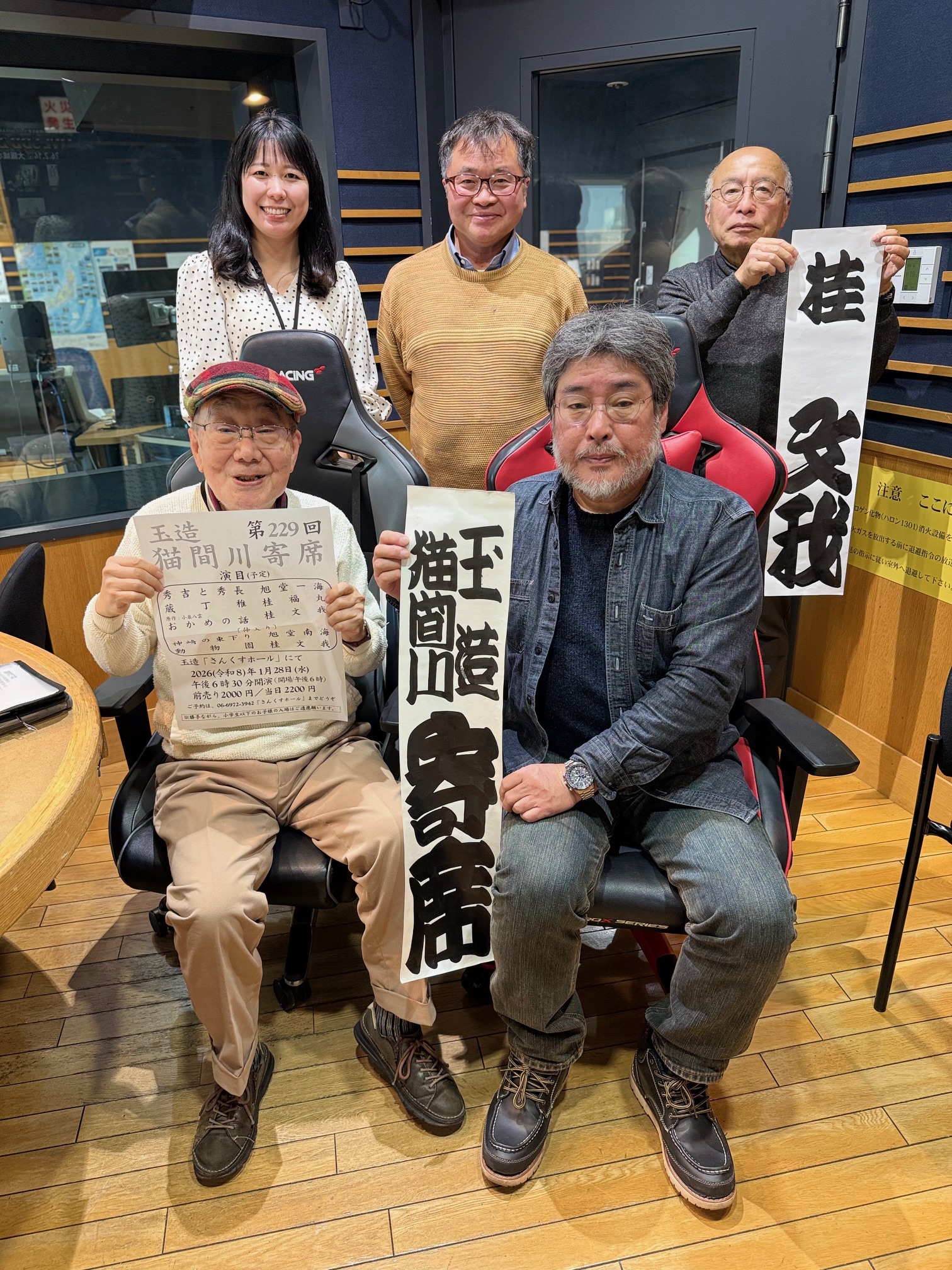 小野さんは1958年(昭和33年)大阪市東成区生まれ、実家はちいさなミシン屋さんでした。人を喜ばせたり笑かしたりするのが大好きで「ちょか」とか「いちびり」とよく言われたボンボンだったそうです。しかし基本的には真面目な性格、化学系の大学へ進学したものの試験管相手の味気ない毎日にウンザリし、自分には合わないと退学。大阪教育大学を受け直して大阪市立小学校の教諭になり、教師は天職だと思い日々楽しく過ごしていましたが5年目に両親が同時に病に倒れ、ミシン屋を継ぐこととなり泣く泣く退職。ミシン屋三代目社長となりました。幸運にも商売は順調で、冷暖房完備の工場・会社事務所・両親と同居するための居宅を一つにしたビルを新築。しかしご両親はそこに住むことなく相次いで亡くなられました。その後も業績は好調だったものの、ビル建設のための借金を返し終わったとたんに受注がなくなりミシン業は廃業。幸い全従業員さんの再就職先が決まったので、思い通りにならない自分の人生を振り返り「これからは自分の好きなことを仕事にして生きていこう」と決心。教師時代に覚えたパソコンで行う計算の仕事を本業とし、ビル1階の工場跡は多目的ホールに改装。大好きなミュージシャンのライブを始めとする面白いイベントを開催し、我が故郷「東成」を勝手に賑やかにしようと決意。2003(平成15)年4月、家業の「サンキューミシン」に因んで「さんくすホール」と名付けた多目的ホールをオープン。ホールは一般貸しの傍ら、フォークシンガーの加川良さんをこけら落としに、以降、大塚まさじさんや有山じゅんじさん、中川イサトさんなど、大阪ゆかりのミュージシャンを中心にライブを年に数回開催。コロナ禍まで順調に続いていました。そして2005年(平成17)年10月、ホール外壁に貼り出していた「加川良さんのライブ告知ポスタ」ーを見て、「こんな所に貸しホールがあるんや」と、落語家の桂文我さんが訪ねて来られました。「自分も以前から地域寄席をやってみたかった」と伝えると意気投合。トントン拍子に話が進み、年明けの2006(平成18)年1月27日に『第1回玉造・猫間川寄席』を開催。寄席の名はかつて近所を流れていて今は暗渠となった『猫間川』に因んで命名。毎月一回、会場設営や運営は奥様とお姉さんとの三人四脚で開催。桂文我さんが出演者と演目を決め、寄席の雰囲気を大切にと必ず生のお囃子が流れています。名ビラは全て元小学校校長先生がボランティアで協力。こうして始まった猫間川寄席は、途中コロナ禍による休演が計12回あったものの現在まで続き、毎回多くのお客様で賑わっています。昨年12月の第228回で満20年を迎え、いつの間にか大阪で開催される地域寄席の中でも最古参となり「第25回なにわ大賞」にも選ばれました。また、口演された落語のネタの数も多く、20年間で1133席が披露され、同じネタを複数の落語家が演じた場合を1と数えた純演目数は735席、735もの違う落語が猫間川寄席で演じられ、桂文我さんも「これだけの落語のネタがかかった落語会は、他にない」と語ります。「20年続いたのは、多くの方々の支えがあったからこそで、私一人では決して続けることは出来なかった。特に妻にはその承諾と協力がなければこの猫間川寄席は始まらなかったので、口に出して伝えたことはないが、本当に感謝している。小さな寄席だが20年続けて来て、ほんの少しだけれど、「東成」が賑やかになったかなと思う。また、大阪と東京にしかない、300年続く大衆・伝統芸能である落語にとっても、落語家さんの芸の披露の場を提供することで少しは貢献できたかな。これからも、体力と気力がもつ限り少しでも長く続けて行きたい!」と語る、席亭小野裕司さん、さあご登場です。